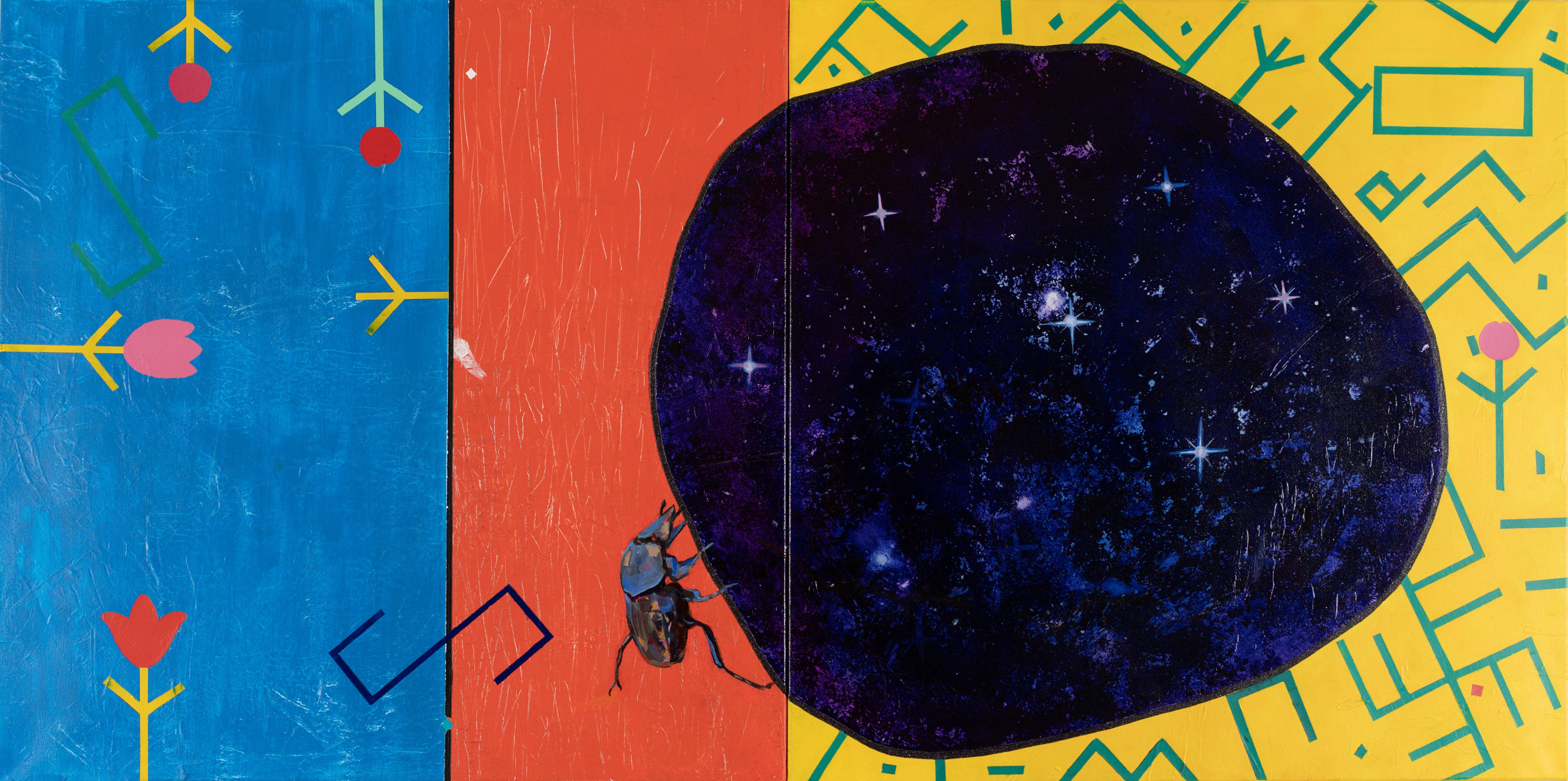 A Grain of Happiness (2024), 70 X 140 (70 X 70(X2)) cm, acrylic on canvas.