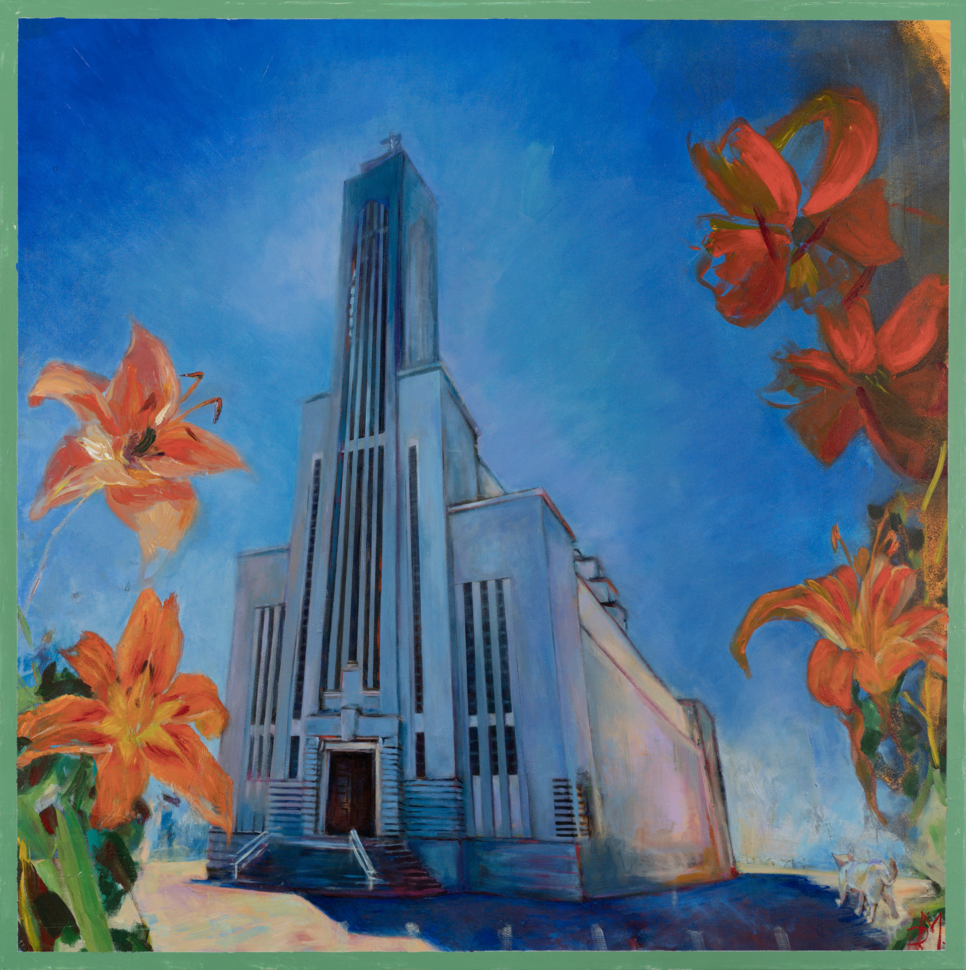 Postcard of Žaliakalnis (2025), 110 X 110 cm, acrylic on canvas.