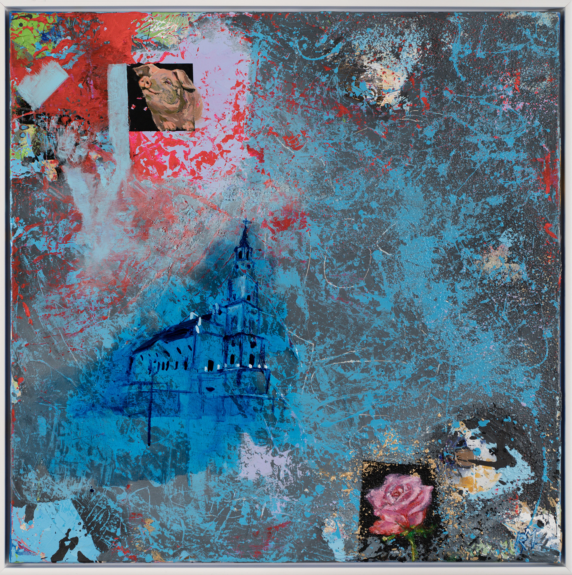 About The Situation Or Let's Not Let The Pigs Take Over (2026), 70 X 70 cm, acrylic on canvas, framed.